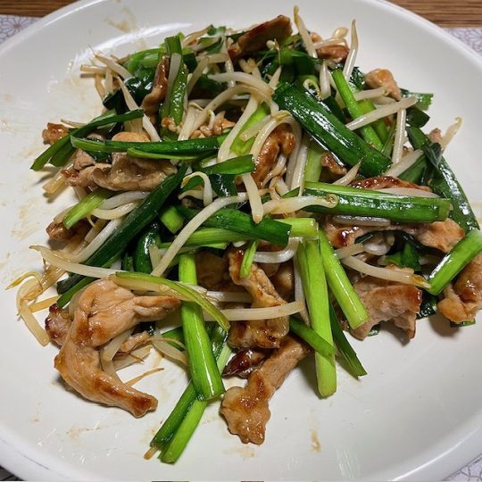 ニラを炒めて完成