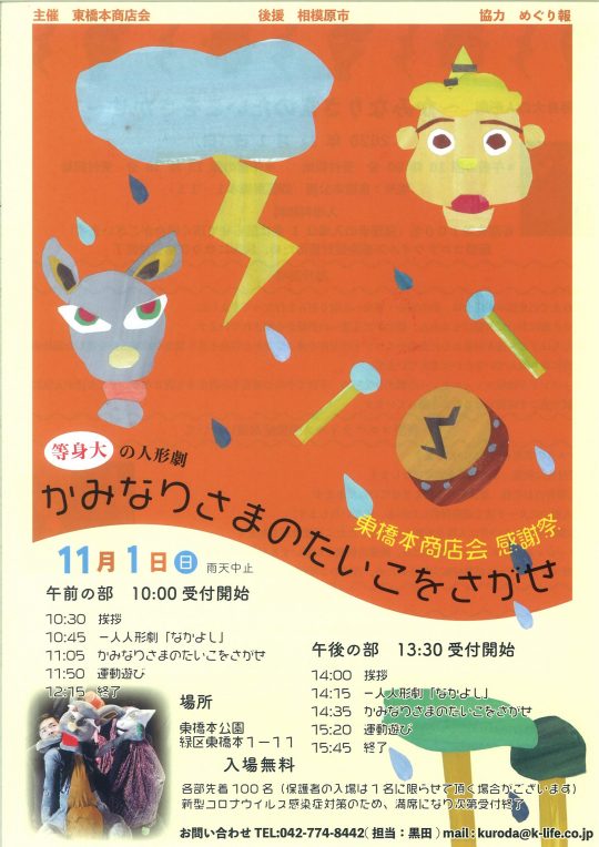 そして、人形劇開催につきましてご尽力いただいた「東橋本南自治会」さん、「東橋本第一自治会」さん、「東橋本第二自治会」さん、「がくどうプラス」さん、「めぐり報」さん、「グループたまご」さん、どうもありがとうございました。