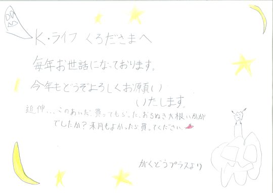 今年もがくどうプラスさんがハロウィンを開催するとお手紙をいただきました。