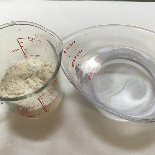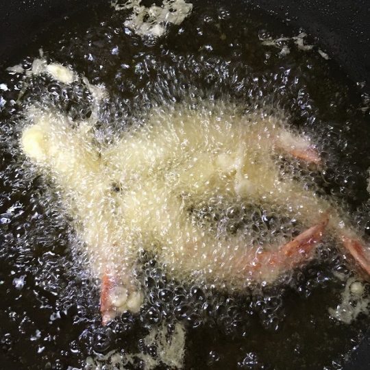 衣が付きにくい具材は打ち粉をしておくべきでした。