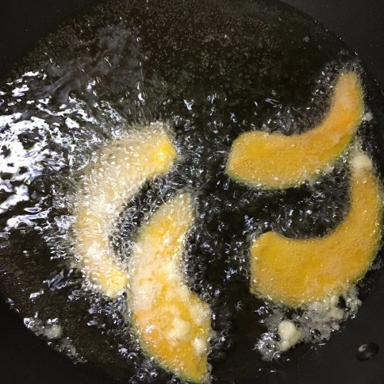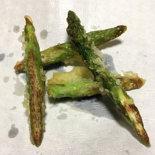 全種類の具材を一気に揚げず、1品揚げては食べ、また1品揚げては食べました。