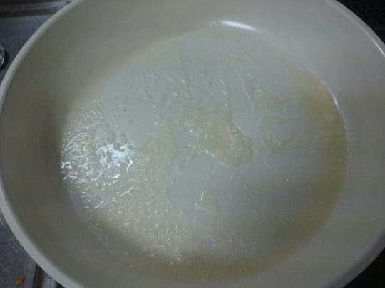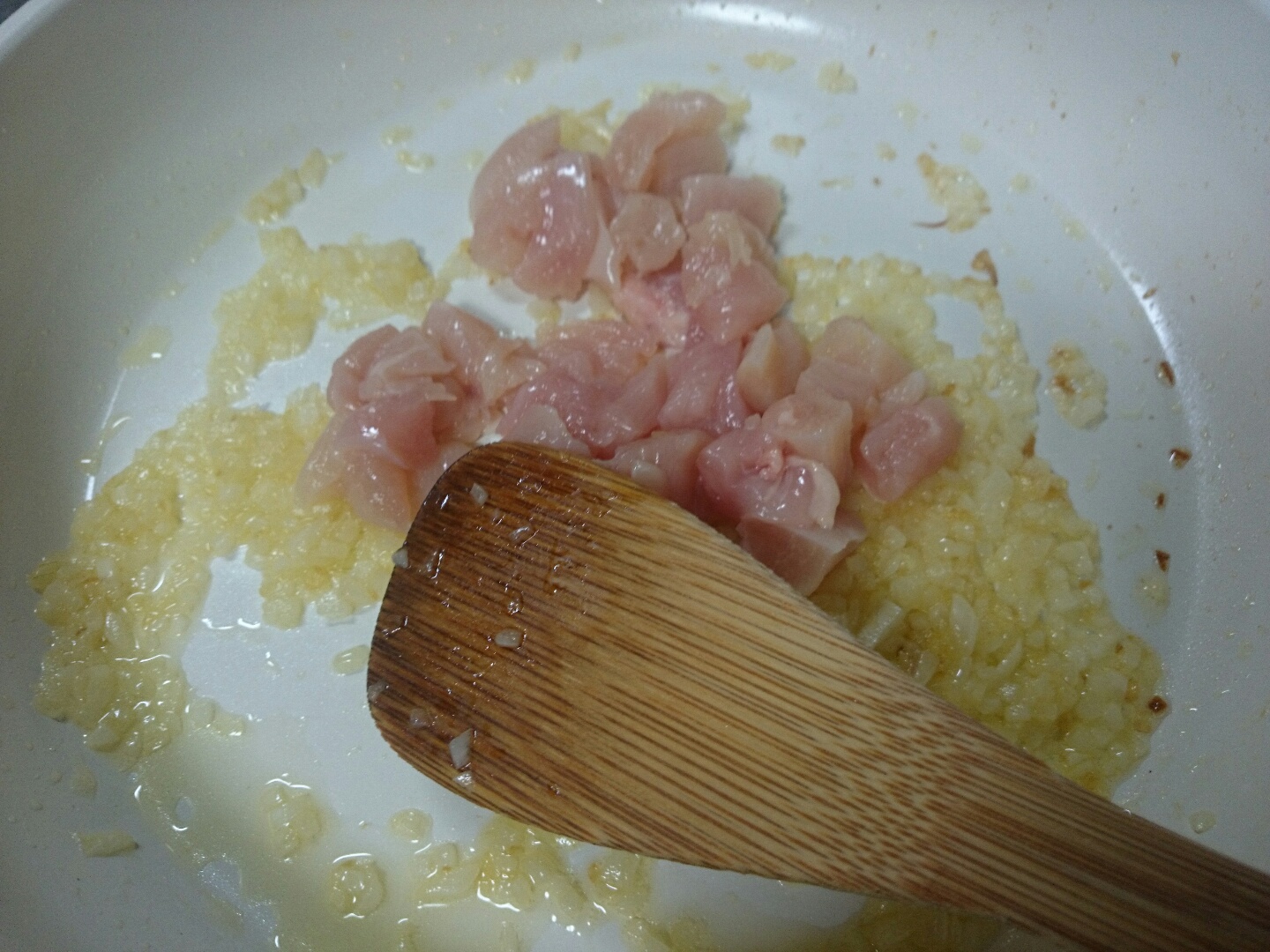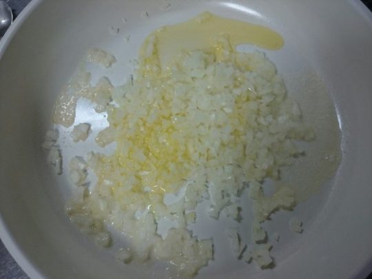フライパンにオリーブ油を敷いて玉ねぎを炒めます。