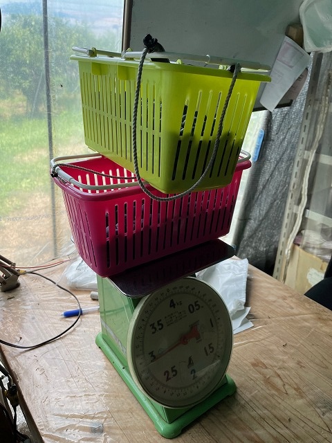 こだわり苑さんはブルーベリーの食べ放題ではないので、収穫したブルーベリーをカゴにどんどん入れていきます。