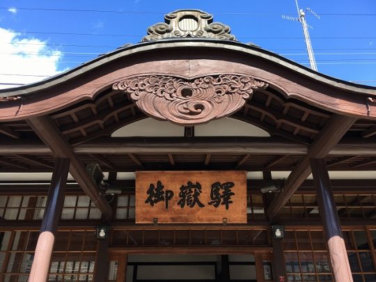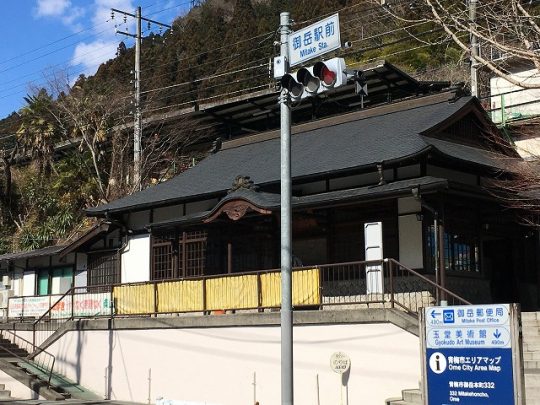 待合室の看板が右読み、塗装の色落ち具合、レトロな感じで落ち着きます