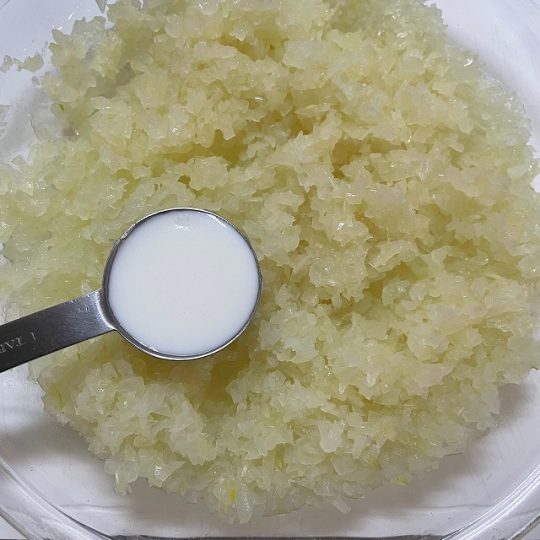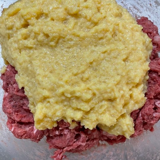 レシピを見て作ったのですが、計算を間違えたようで、つなぎの量が多すぎて、でっかいハンバーグになってしまいました。
