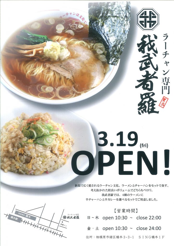 ラーチャン専門 我武者羅 橋本店さん オープン予定
