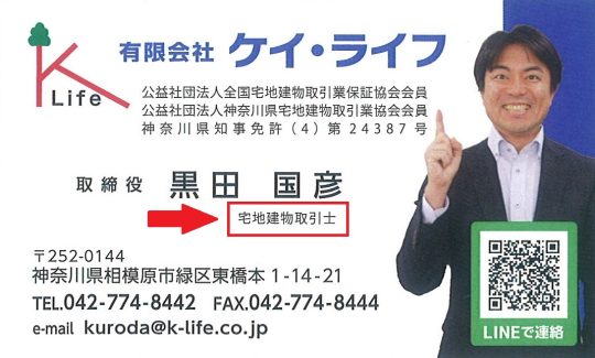 不動産のプロか?素人か?は「宅地建物取引士」の国家資格を取得しているかがとても大事なので、担当者の名刺をよく見てください。