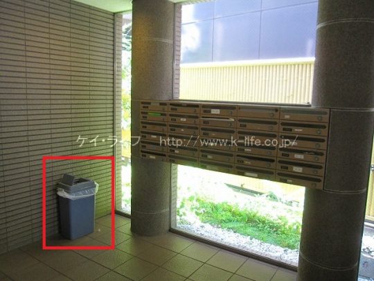 このゴミ箱があるということは、定期的に共用部の清掃が入り、ゴミを処分してくれているということですね。