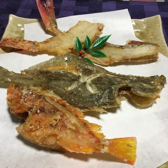 アヤメカサゴとカレイ、オニカサゴのから揚げ