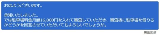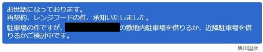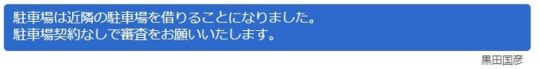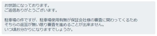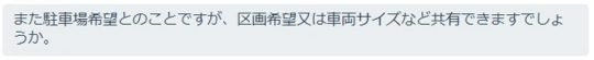 ・「また駐車場希望とのことですが、区画希望又は車両サイズなど共有できますでしょうか。」