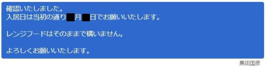 入居日は当初の通り〇〇月〇〇日でお願いいたします。