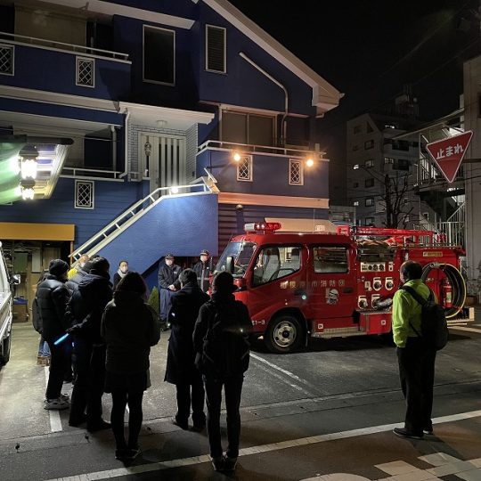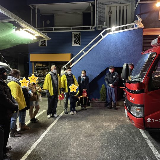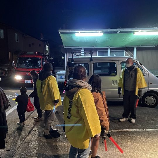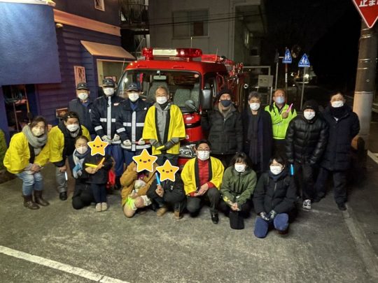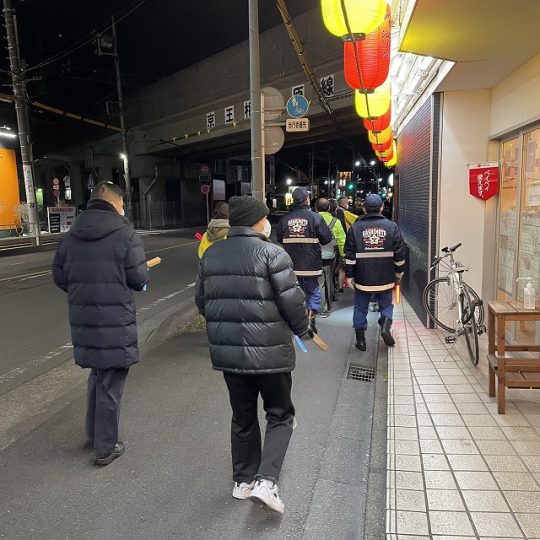 「火の用心」と掛け声をかけ、拍子木を打ち鳴らして火の取り扱いに注意を呼びかけました。