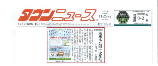 東橋本商店会文化祭開催後、タウンニュースさまの記事として取り上げていただきました。