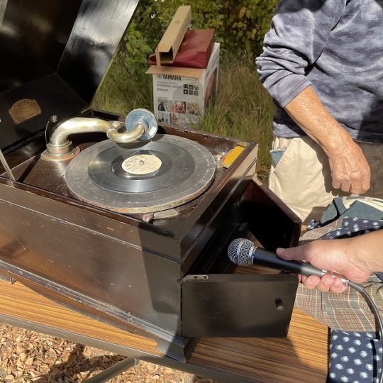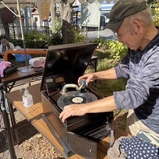 蓄音機でレコードをかけ、昭和の雰囲気が会場を包み込みます