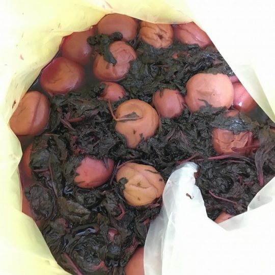 1ヶ月以上、赤紫蘇に漬かった梅。