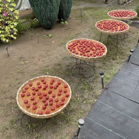 9月の日差しはやわらかく、梅がゆっくりと干されている感じでした。