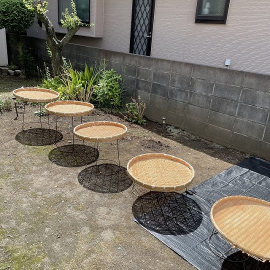 梅を干す前にきれいに洗ったザルを干します