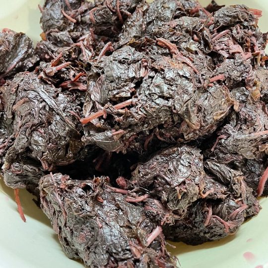 1ヶ月以上、赤紫蘇に漬かった梅。