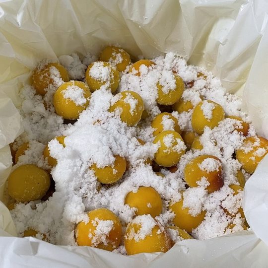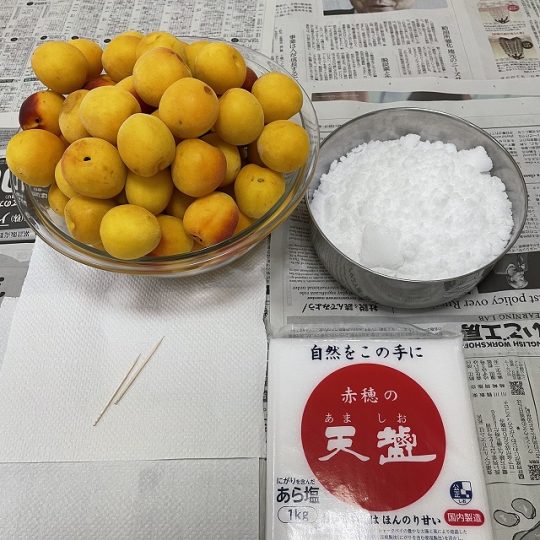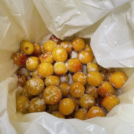 追熟して梅が黄色くなったので、いよいよ梅漬けです。