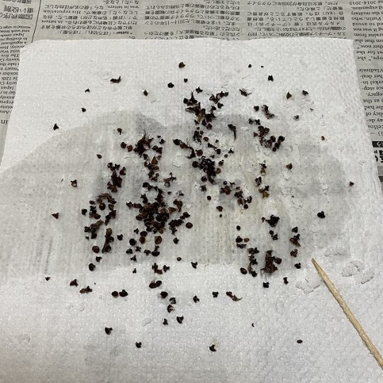 京都市左京区大原から塩漬けもみ紫蘇が届きましたので、樽にもみ紫蘇を投入します。