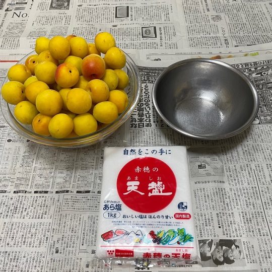 追熟が終わり、梅が黄色く色づいたので、いよいよ梅漬けです。