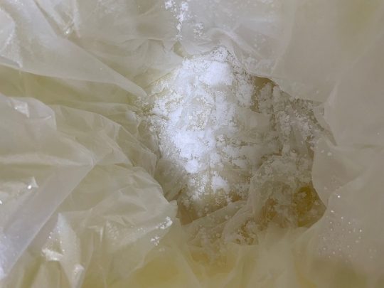 京都市左京区大原から塩漬けもみ紫蘇が届きましたので、樽にもみ紫蘇を投入します。