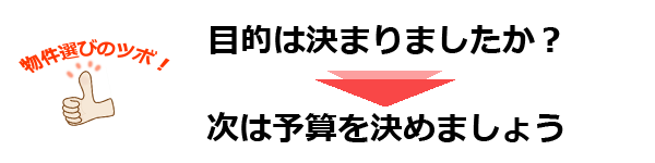目的の一部ですが、「目的」が決まると、方向性が定まるので、ブレないお部屋探しをすることができます。
