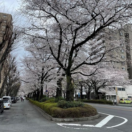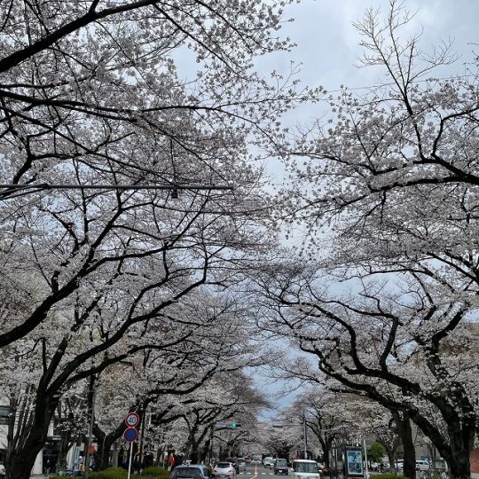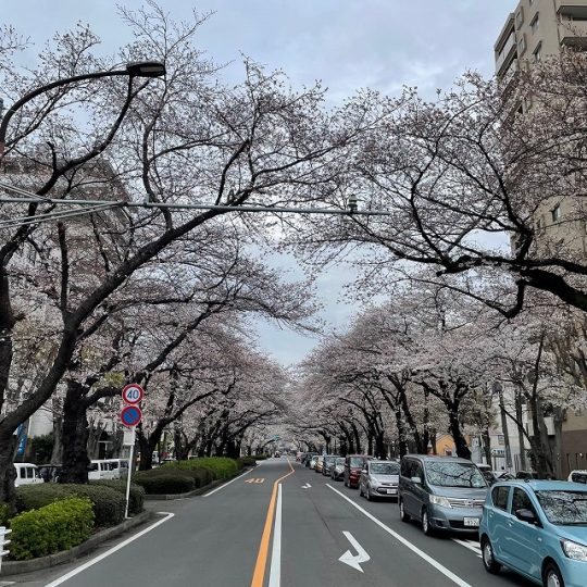 この時期になると歩道から桜の写真を撮る人や、桜のトンネルを通る車で少し渋滞します。