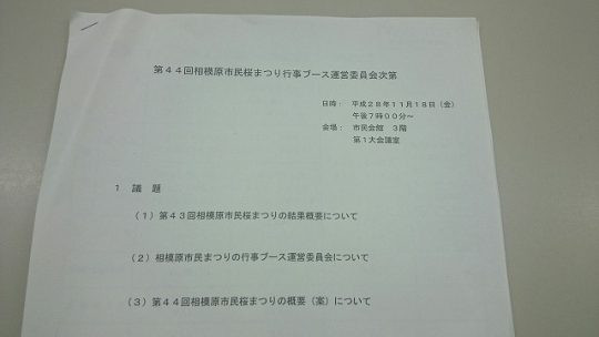 今夜は来年4月に開催される「相模原市民桜まつり」の会議に行って参りました。