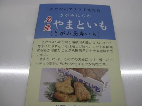 さがみはらの大地と相模川の豊かな水によって育まれたやまといもは粘りが強く、しかも長期間の保存が可能なことから贈答用にも大変喜ばれています。
