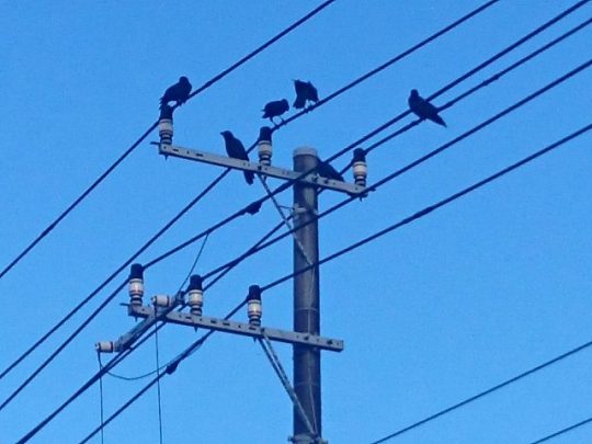 大きな体で群れをなしカァー、カァーと飛び交う姿は不気味です。