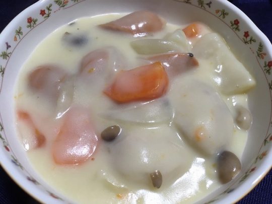 この勝負のために、夕飯はパンに合うクリームシチューにしてもらいました。