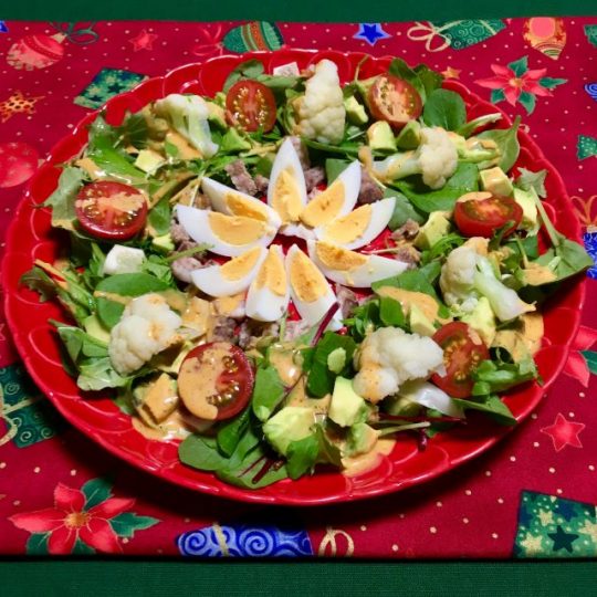 アボカド入りサラダにコブドレッシング