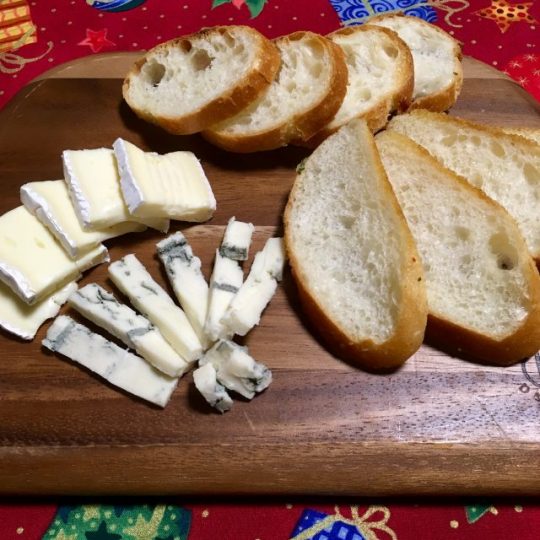 ブリー、ゴルゴンゾーラ、フランスパンと、ガーリックトースト。