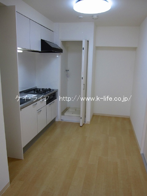新しくシステムキッチンに替えて洗濯機置場を設置。