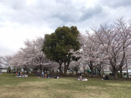桜がきれいに咲いているので、人がたくさん集まっています