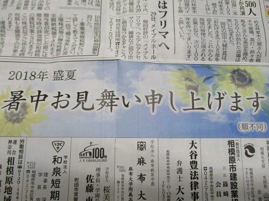 タウンニュースさんを通じて、暑中お見舞い申し上げました。