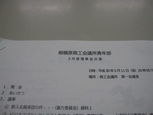 今夜は相模原商工会議所青年部の5月度理事会でした。