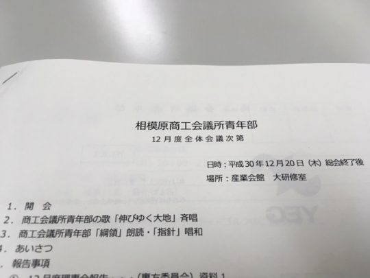 その後引き続き、相模原商工会議所青年部 12月度全体会議に入りました。