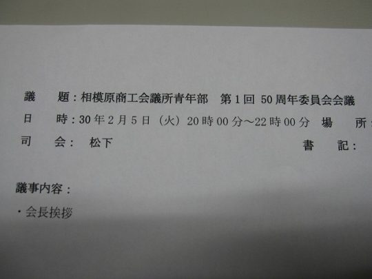 今夜は相模原商工会議所青年部50周年事業に向けての会議でした。