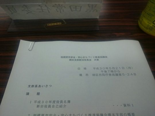 今夜は安全・安心まちづくり推進協議会橋本支部の役員会でした。
