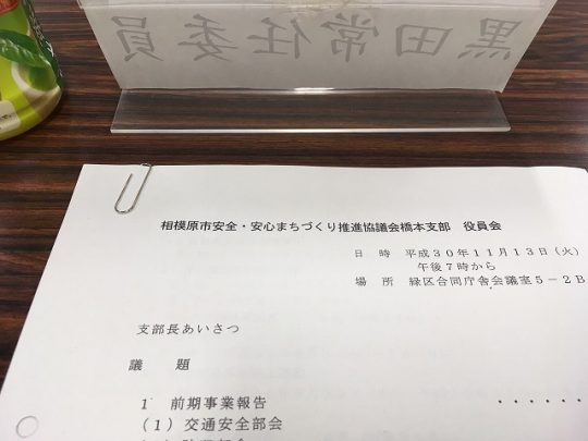 今夜は相模原市安全・安心まちづくり推進協議会橋本支部 役員会でした。