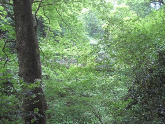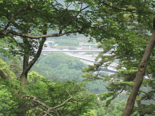 木の間から道路が見えます