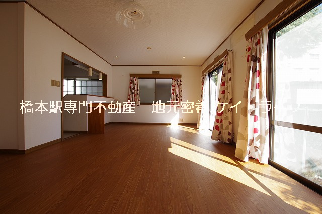 昭和60年築 建物面積134.94㎡ 5LDKの貸家。2年間の定期借家契約で、最長6年まで再契約が可能です。貸家周辺は交通量が少なく大変静かな住宅街で、55m先には東京都と神奈川県の県境となる境川が流れ、季節の移り変わりを近くに感じることができます。尚、境川が近いため、相模原市の洪水ハザードマップで洪水避難地区に指定されております。降雨量が非常に多く、川が増水するような時は貸家から徒歩6分(430m)の旭小学校へ避難してください。貸家から橋本本町公園まで徒歩1分。遊具がありますので、お子さんがのびのびと目一杯遊べますね。建物は昭和60年築で、新耐震規準です。リビングダイニングは15帖とゆとりのある広さ。キッチンはコの字型で2人で立っても大丈夫!お料理がはかどりますね。お風呂は丈夫で保温効果の高いステンレス浴槽。深さがあって肩までしっかりと漬かれますね。大きな窓があり、十分な換気が出来ます。タイル張り仕上げが昭和を感じさせてくれますよ。2階にも洗濯機置き場がありますので、2階のバルコニーへそのままお洗濯物を干すことが出来ます。尚、TVのご視聴はCATVなどに別途ご加入いただく必要があります。駐車場2台分付きの貸家。橋本駅徒歩圏で5LDKの貸家は珍しいですね。