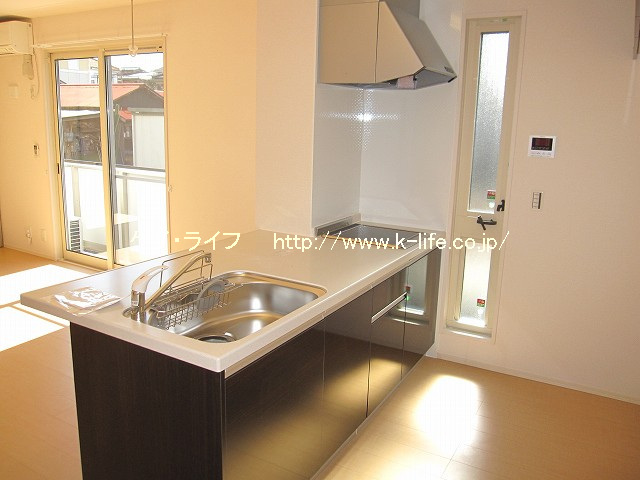 オール電化仕様、軽量鉄骨造のアパート 「 Grand Court東橋本 」 橋本駅徒歩17分と距離がありますので、自転車があると便利ですね。アパート周辺はのんびりとした落ち着きのある住宅街。118m先に東京都と神奈川県の境界となる小さな川「境川」があり、緑を眺めながらお散歩が楽しめます。オール電化住宅は電気料金のお得な深夜電力で、お湯を沸かし、火を使わないため、火災の発生が抑えられます。玄関はカードキー。ALSOKホームセキュリティとモニター付きインターホンとシャッターで防犯対策。キッチンはペニンシュラ型で、吊戸棚は後ろの壁に付いているため、とても開放感があります。ご家族とも会話がしやすいレイアウトです。キッチンコンロはIHコンロとラジエントヒーター。そして、室内にはウォークインクローゼットが2つもあり、しっかりたっぷりと収納できます。1坪タイプの広々したお風呂でお子さんと一緒にゆったりと足を伸ばしてくつろげますよ。橋本駅から離れていますが、静かな環境で暮らしたい方におすすめです。