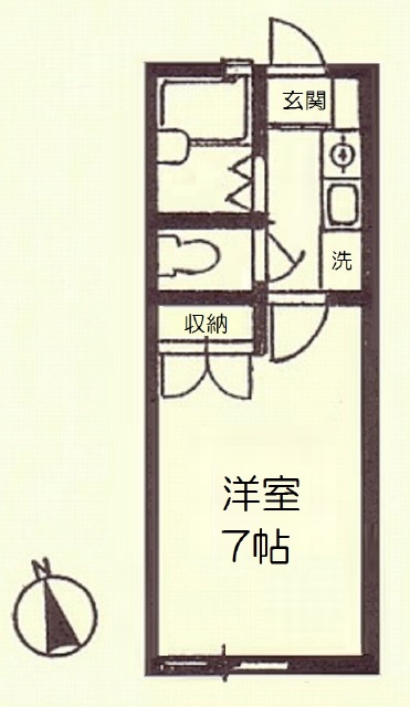 洋室7帖に1間のクローゼット。バス・トイレ別で、室内に洗濯機が置けます。駐輪場はございませんので、敷地内の空いているところに自転車を置いていただきます。