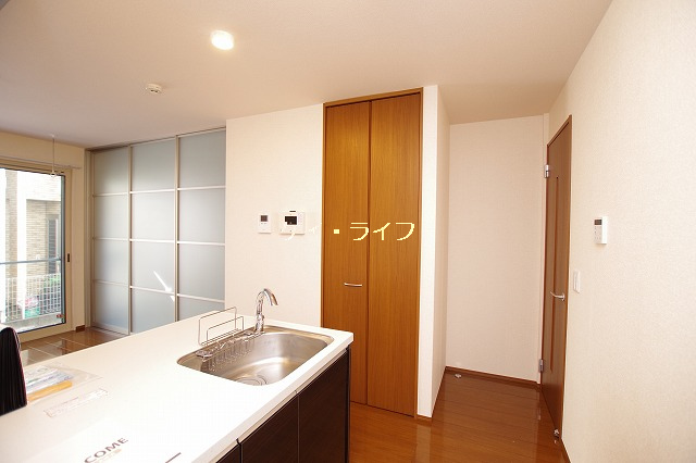 2012年築 軽量鉄骨造2階建て「GRAND CHARIOT(グランシャリオ)」 第一種住居地域にあるアパートですが、アパートの前に23時30分まで営業の低価格スーパー「 ザ・ビッグ 」 横断歩道を渡ると「 ミニストップ 」があり、お買い物に便利な立地です。橋本駅まで徒歩16分と少し遠いのですが、橋本駅までは平坦な道路のため、自転車が大活躍すると思います。 外壁はチャコールグレーと生成色のツートンカラー。シルバーのサッシと合っていてシャープな印象を受けますね。セコムのシールが貼られた玄関ドアは薄型のラウンドカードキー。 キッチンは半島を意味するペニンシュラキッチン。吊戸棚がないので、キッチンからの視界が開放的です。収納はウォークインクローゼット。ハンガーパイプが2本あり、コートやスーツ、カーディガンなど衣類の丈に合わせてご使用いただけます。その他、SECOMホームセキュリティなど充実した設備が揃っているのが魅力です。いつもすぐ終了する物件なので、気になる方はお早めに。