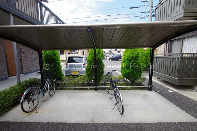 バス・トイレ別、給湯、シャワー、室内洗濯機置場、独立洗面台、ガスキッチン、コンロ2口以上、システムキッチン、収納、ウォークインクローゼット、フローリング、室内物干し、バルコニー、シャッター・雨戸、モニター付インターホン、CATV(J:COM対応)、プロパンガス、2階以上、最上階、日当たり良好、閑静な住宅街、駐輪場、駐車場