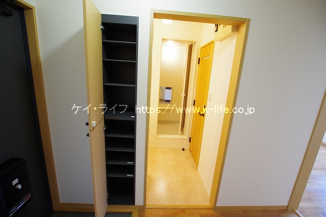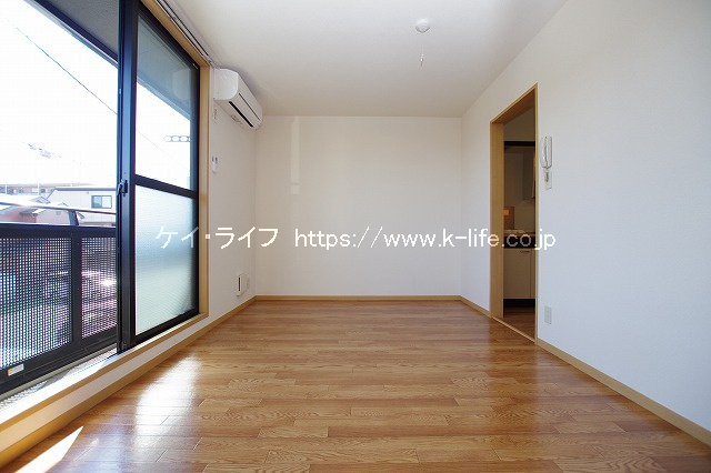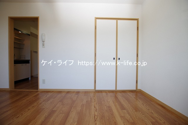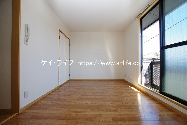 木質パネル工法2階建ての「グランシャリオ」 第一種住居地域のため、アパートの周辺は居住用の建物が多く、大変静かな住宅街です。アパートの敷地内にはきちんとお手入れされた植栽があり、95m先には県境となる小さな川「境川」が流れ、自然豊かで季節を感じられる住環境になっています。洋室と台所の間に戸(ドア)がありませんので、お好みののれんやひもスクリーンで空間をデザインしてみてはいかがでしょうか。(^ ^)