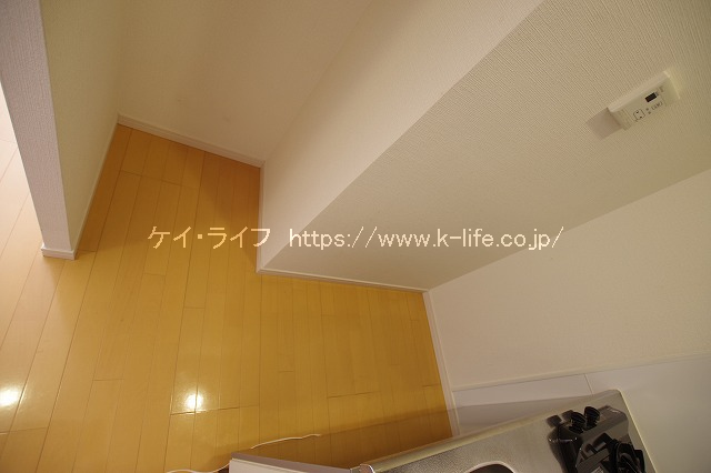 バス・トイレ別、ウォシュレット、給湯、シャワー、浴室乾燥機、室内洗濯機置場、独立洗面台、ガスキッチン、コンロ2口以上、システムキッチン、フローリング、収納、エアコン、モニター付インターホン、ホームセキュリティ、バルコニー、CATV(J:COM対応)、光ファイバー対応、BS、プロパンガス、2階以上、最上階、日当たり良好、閑静な住宅街